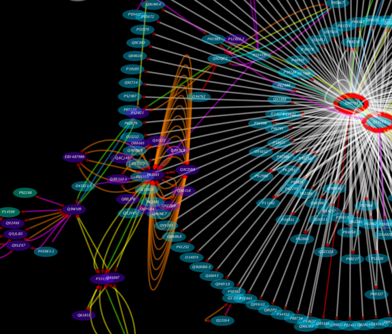 Cytoscape is an open source bioinformatics environment for integration, visualization, and query of biological networks that can be used with a broad variety of data types and customized through the use and development of app extensions.
